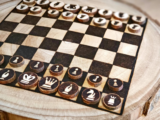 Plongez dans l'univers des échecs avec un jeu entièrement conçu en bois et gravé à la main.