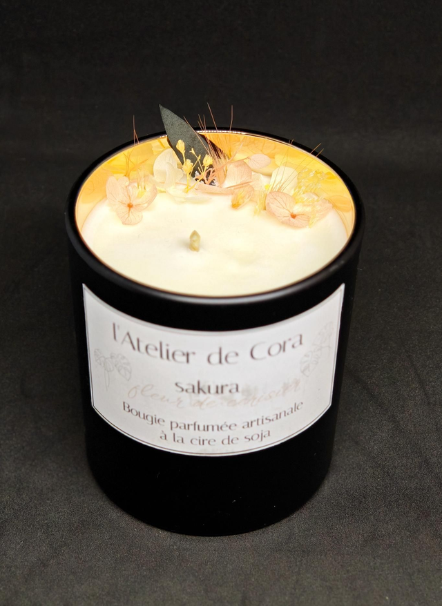 Début du printemps, le retour des beaux jours, direction le Japon avec cette bougie au doux parfum de fleur de cerisier.
