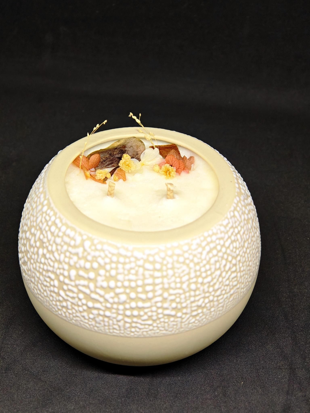 --> Utilisant de la cire de soja 100% naturelle, des traces blanches peuvent apparaitre avec le temps, c'est une réaction naturelle qui n'a aucune incidence sur l'utilisation de votre bougie. Ce sont des bougies faites à la main, mais aucune ne sera identique.